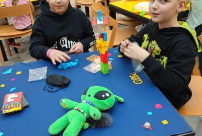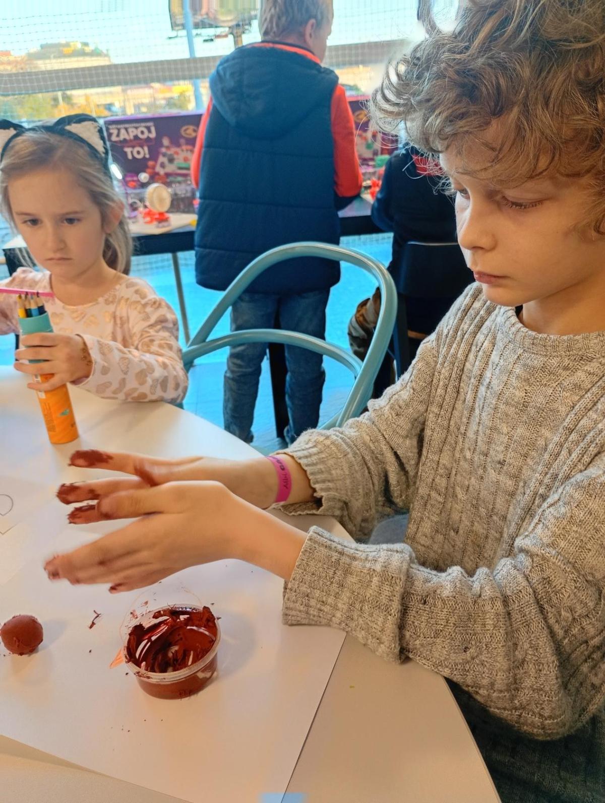 Ačkoli počasí napovídalo, abychom odpoledne strávili spíš venku, nemohli jsme vynechat příležitost navštívit odpolední program, který uskutečnila společnost Albi. Přišli jsme tzv. okouknout, jaké novinky nám deskový gigant nabídne. A nebylo toho málo! Děti si vyzkoušely nové verze svých oblíbených deskovek a karetních her, dokonce došlo i na drobnou výtvarnou činnost. Na památku jsme si odnesli vlastnoručně zdobené placky. Nakonec celkem príma odpoledne :)