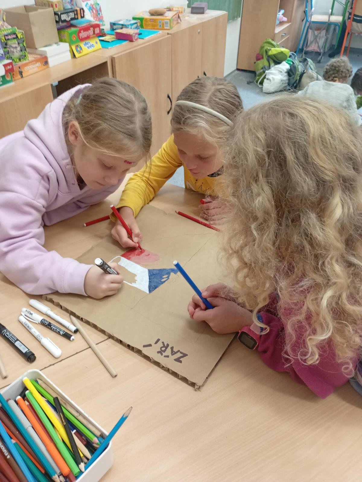 Popustili jsme svou fantasy uzdu a vrhli se do sportování. Připravili jsme se na opičí dráze a zahráli zápas o poklad druhého týmu. Co by to ale bylo za soutěžení bez podporujících symbolů. Proto jsme také vyrobili erby, které na nás po dobu herního snažení dohlížely. S družinou se nenudíme :)