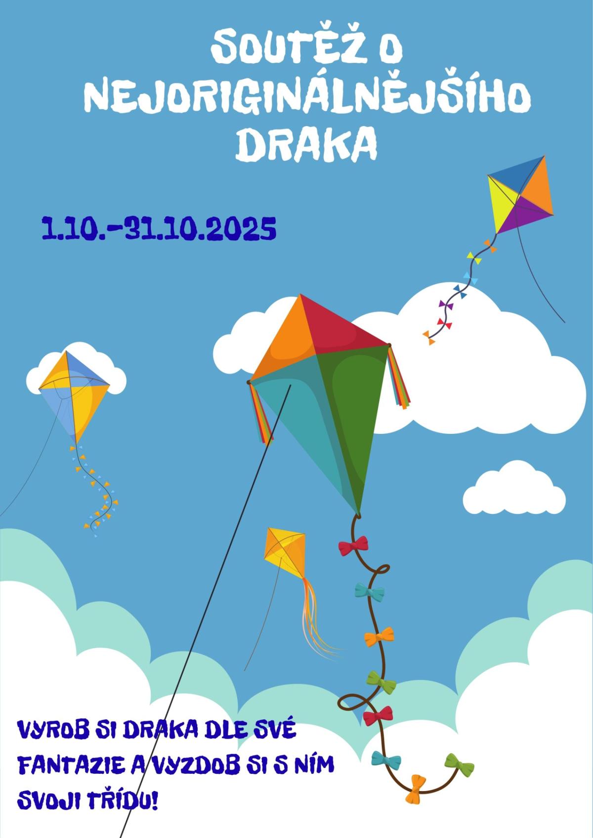Vyrob si vlastního draka a vyzdob s ním svou třídu. Soutěž bude vyhodnocena 6. 11. 2025.
