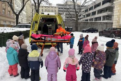 V lednu jsme v naší mateřské školce přivítali zdravotníky, kteří pro děti připravili úžasný interaktivní program plný důležitých dovedností. Dopolednem nás provázel plyšový záchranář Pepík. Formou her a praktických ukázek se děti naučily - jak správně přivolat pomoc, jak ošetřit bolístky, zastavit krvácení a podobně.