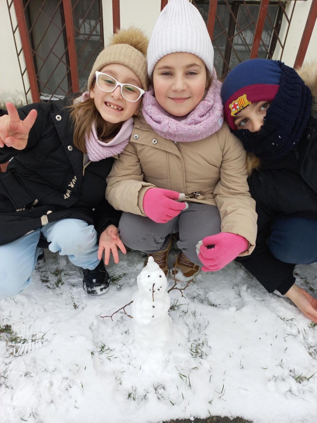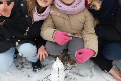Děti ze sedmého oddělení se statečně mezi prvními rozhodly vyzkoušet nové hry à la twister a vypadá, že si je užily :) Také poslední sníh nemohly nechat ladem a ještě postavily sněhuláky, teda spíš sněhuláčky... :)