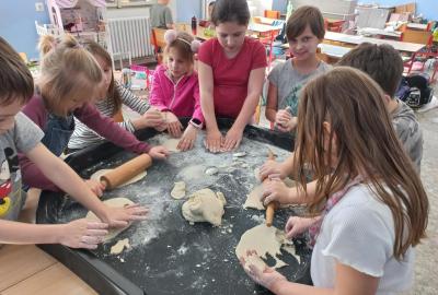 V rámci velikonočního těšení si děti ze sedmého oddělení "zatvořily" z těsta. Děti z oddělení sedmého z těstové hmoty dokonce vytvořily vkusná přáníčka! Zkrátka jaro v kostce :)
