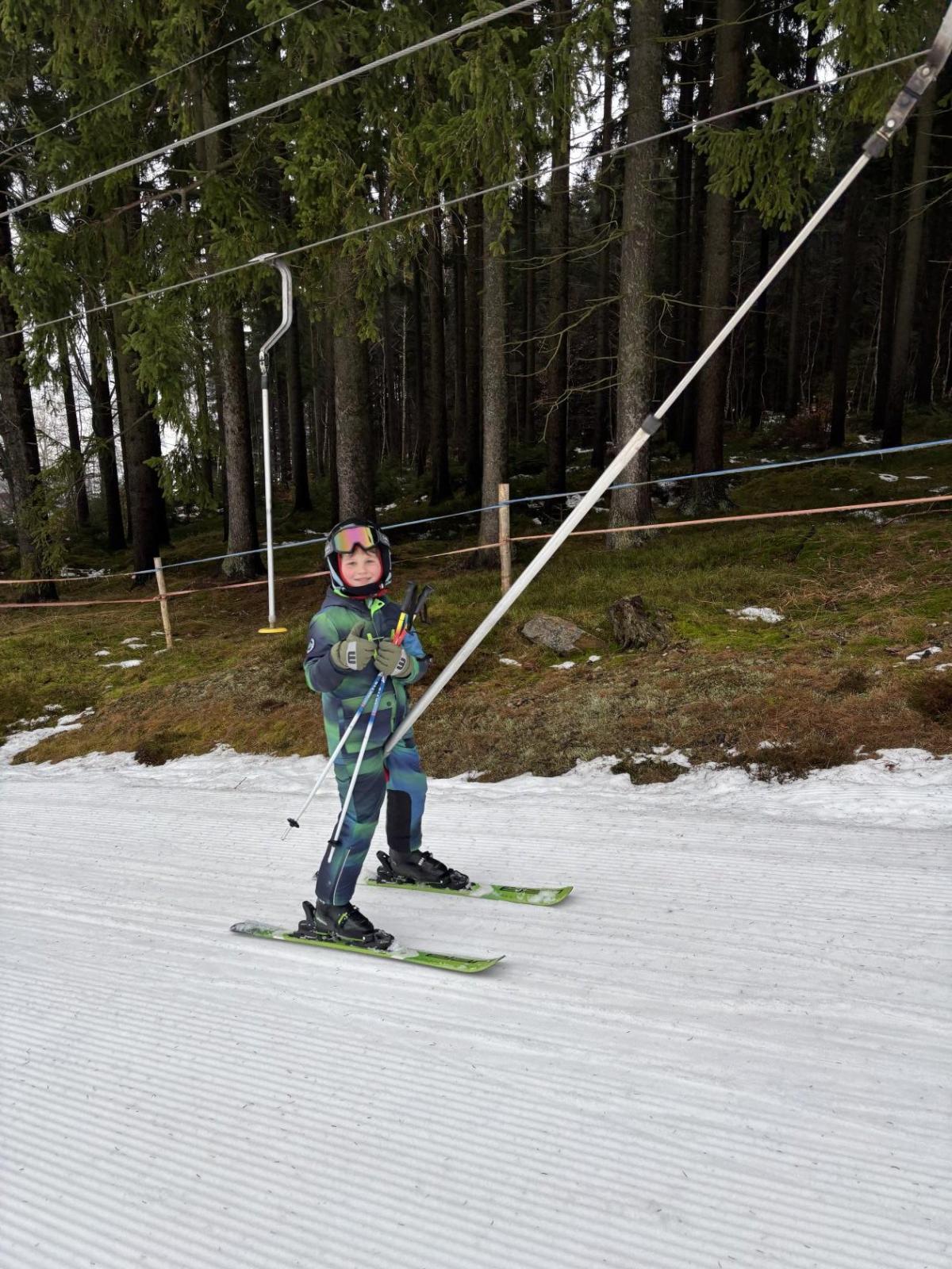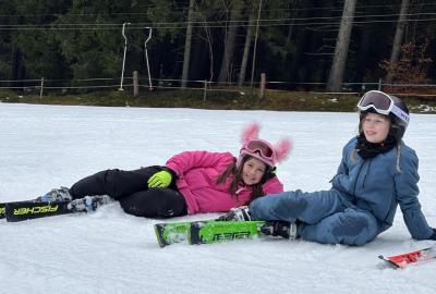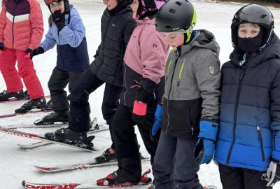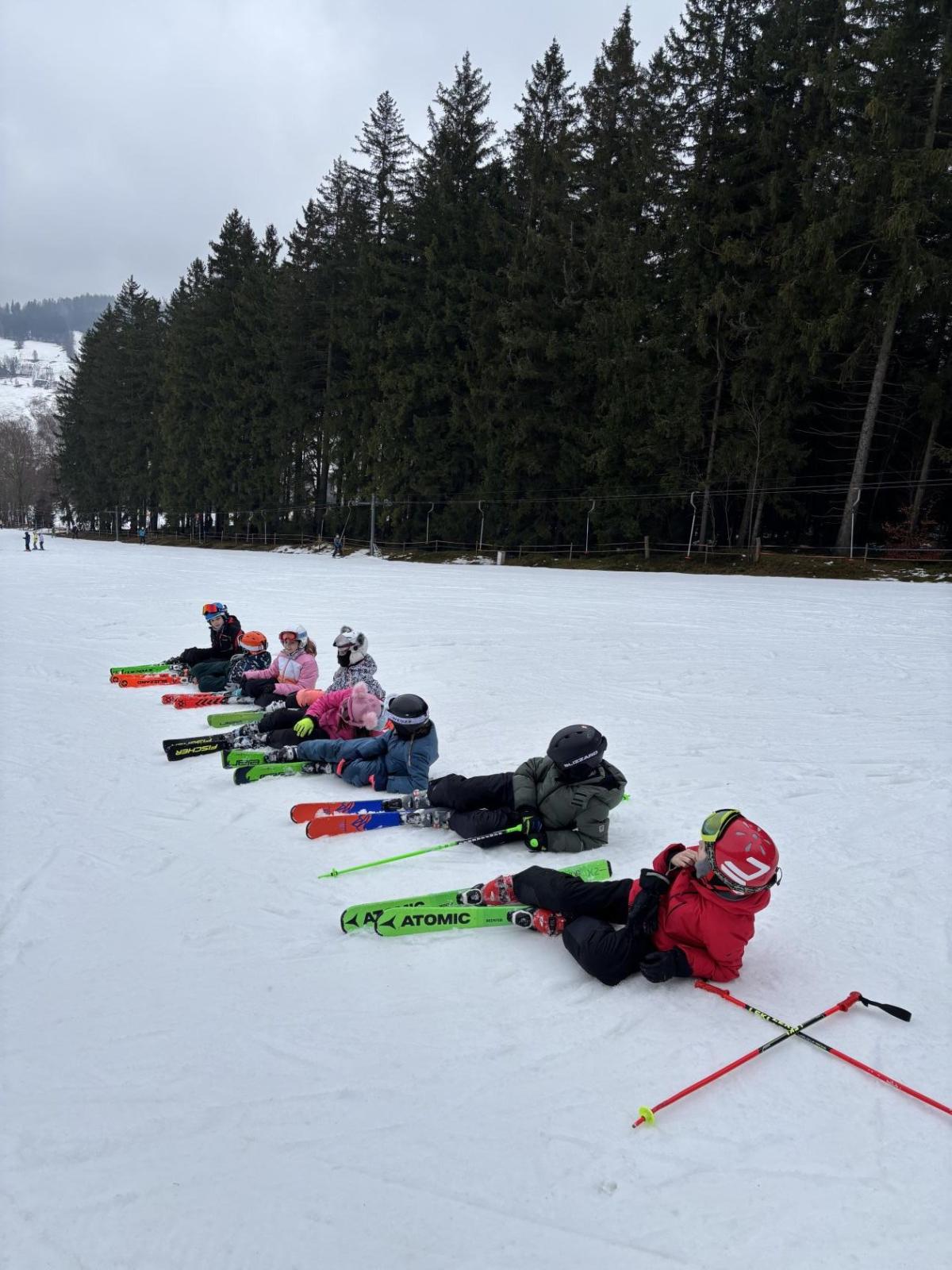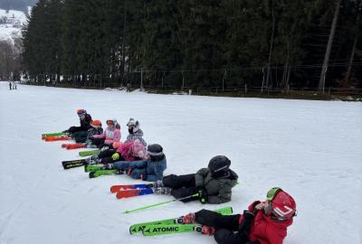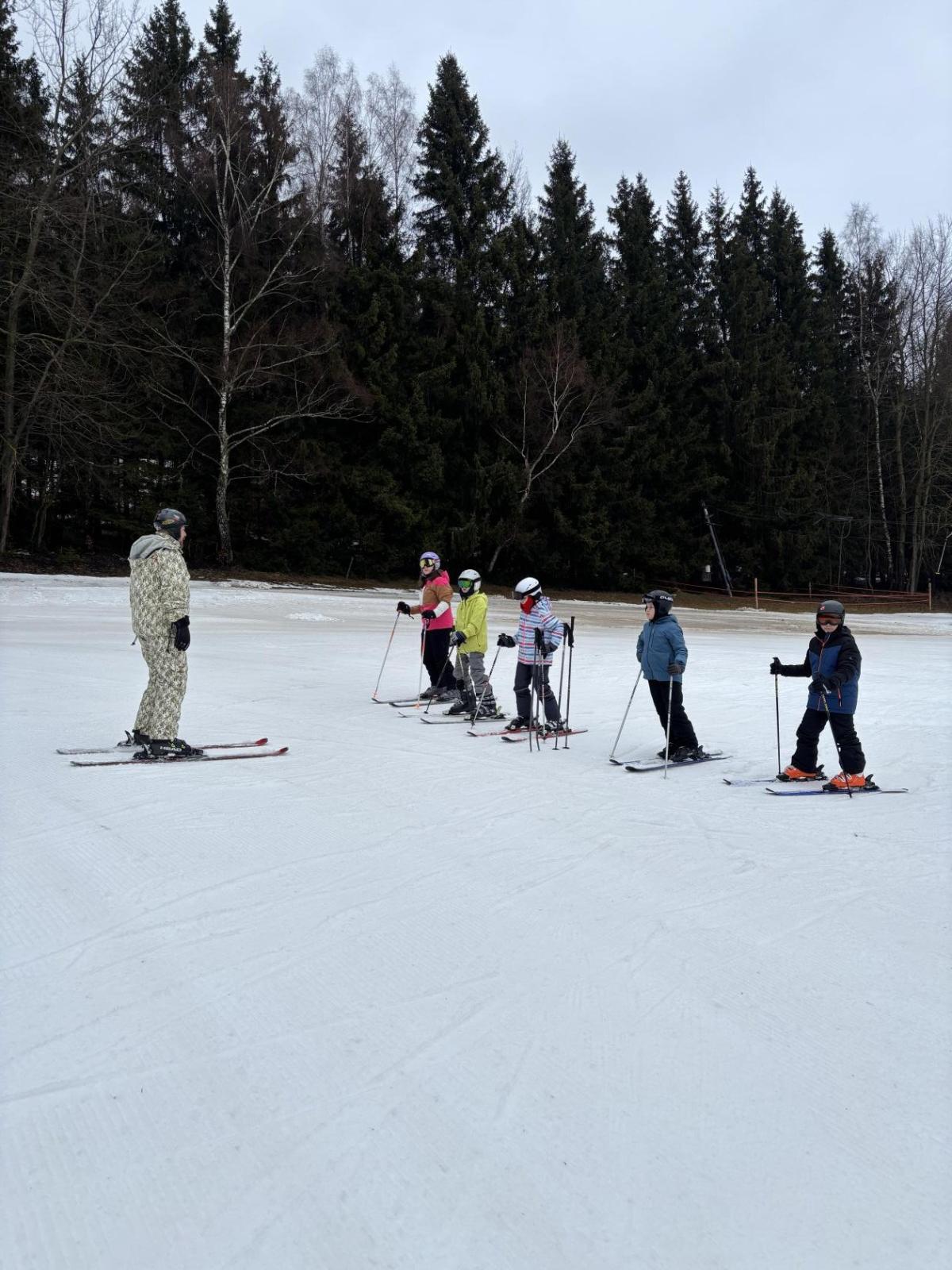 Sněhu není mnoho, ale to nás nezastaví. Zdokonalujeme se v lyžařských dovednostech a inspirujeme se olympiádou. Dnešní výuku jsme zakončili slalomem na čas.