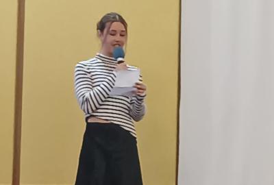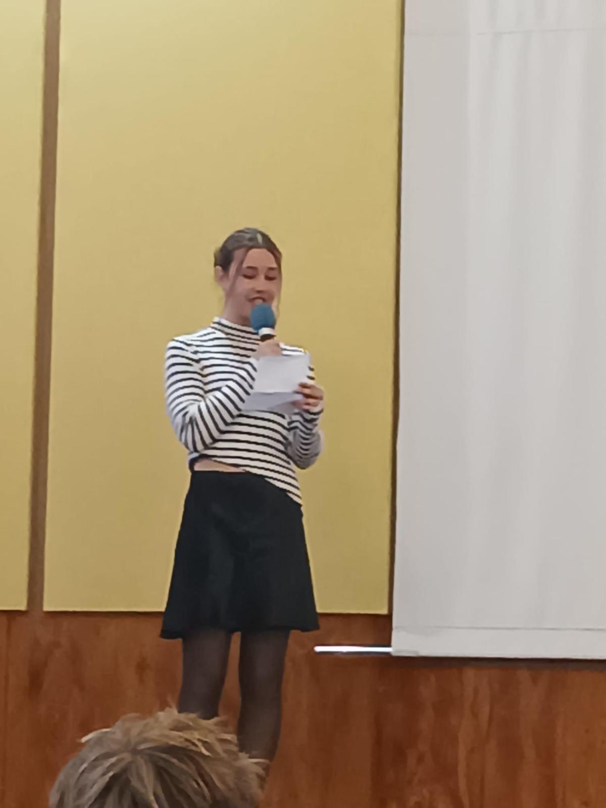 Vyvrcholením jejich spolupráce byla pietní akce 16. října ve školní aule. V tento den si totiž připomínáme oběti prvního transportu z pražského nádraží Bubny do lodžského ghetta v roce 1941. Naši žáci to hostům akce velmi důstojně připomněli.