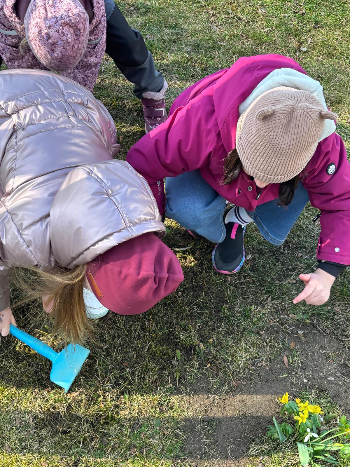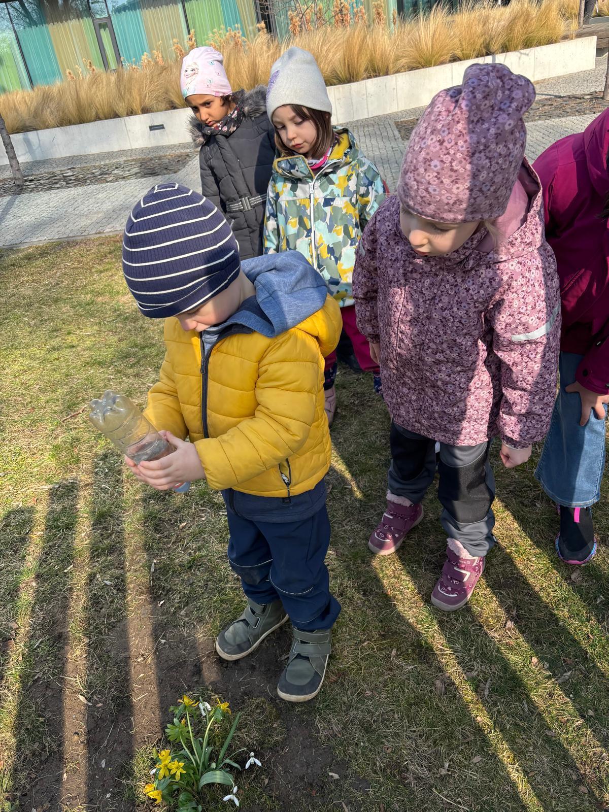 Vysvitlo sluníčku, jaro se ablíží. Děti z Broučků a Rybiček se seznámily s jarními květinami - sněženkami a talovínem. Pomáhaly je společně je zasadit a zalít. Školní zahrada v jarním kabátku nám dělá radost.